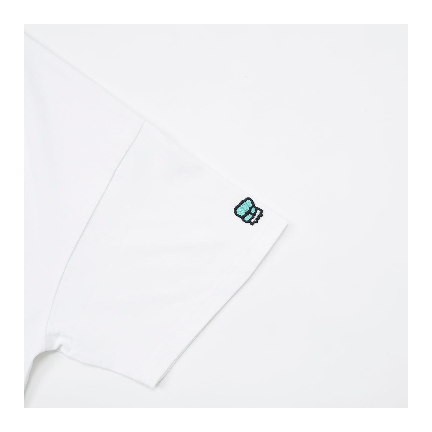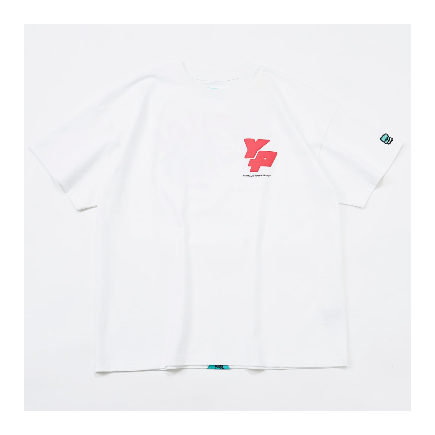 ・バックに雪積もる森を彷徨うYetiを施したTシャツ
